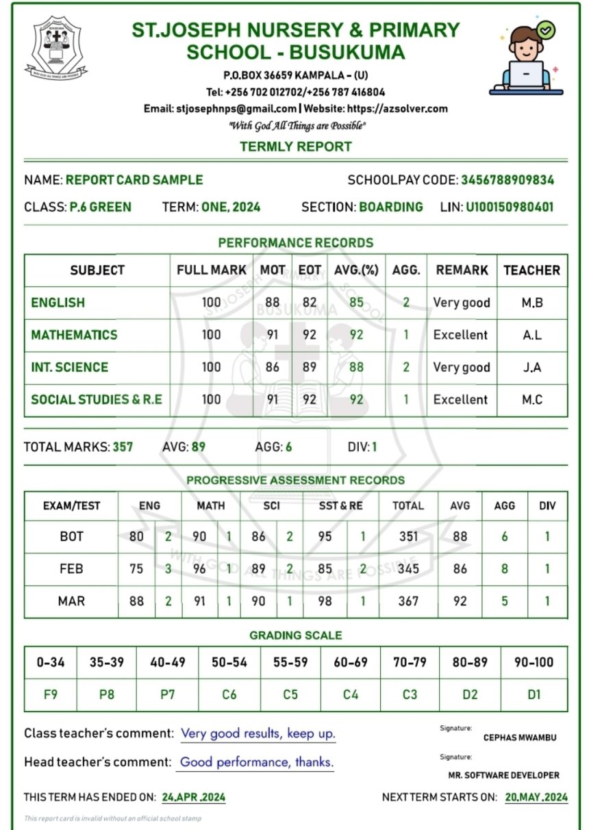 ✔ Generates End of Term, Mid Term & Cumulative Reports